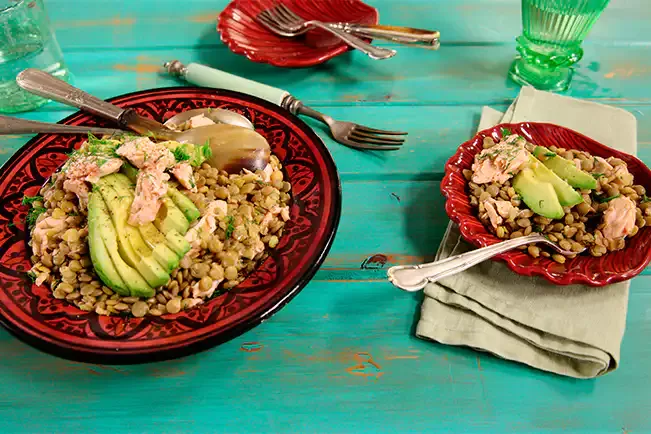 Esta receita, que pode ser entrada ou prato principal surpreende na combinação de sabores: o salmão e a lentilha são par…