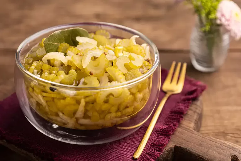 Estes picles de salsão deixam qualquer cardápio mais interessante. São crocantes e firmes na medida certa. Uma opção per…