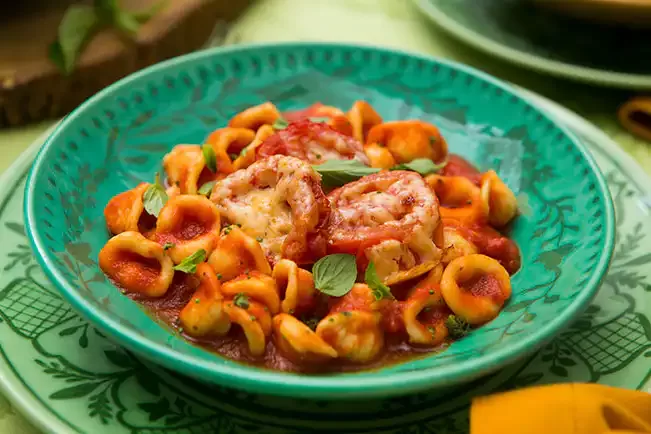 Orecchiette caseiro com molho de tomate e tomates assados