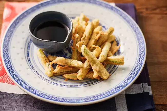 Tempurá de talo de couve (reaproveitamento)