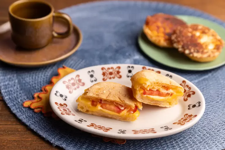 Sanduíche de pão de queijo, sim, senhor. Prensado na frigideira, o pão de queijo ganha uma camada extra de crocância, e …