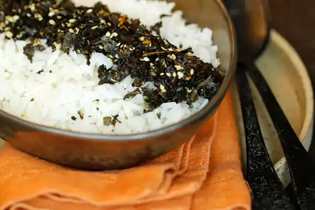 Arroz com furikake de couve