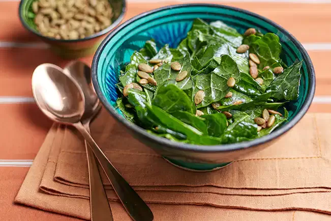 Salada de couve com semente de abóbora