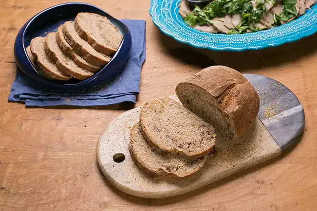 Cascudo, com miolo macio e o crocante das nozes: esse pão é uma diversão. Sob medida para quem quer se aventurar nos ter…