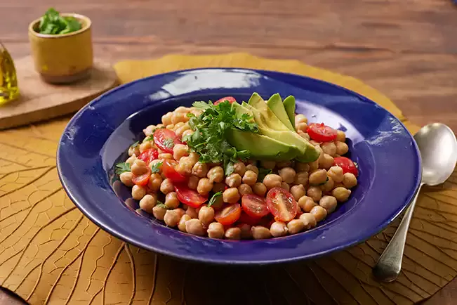 Salada de grão-de-bico com avocado e tomate